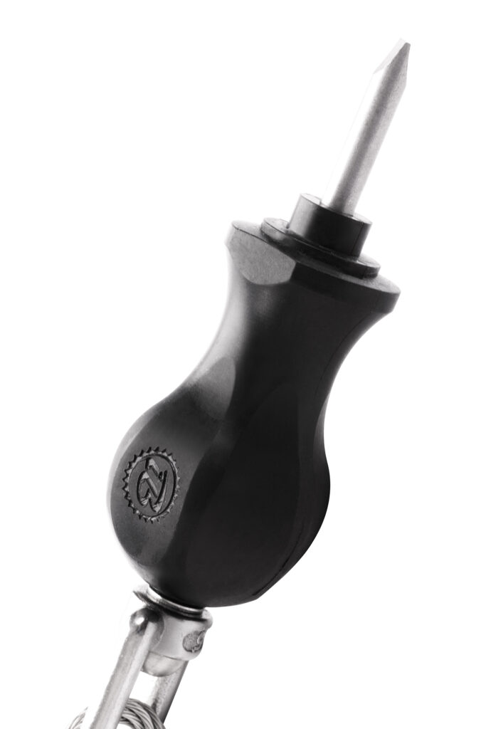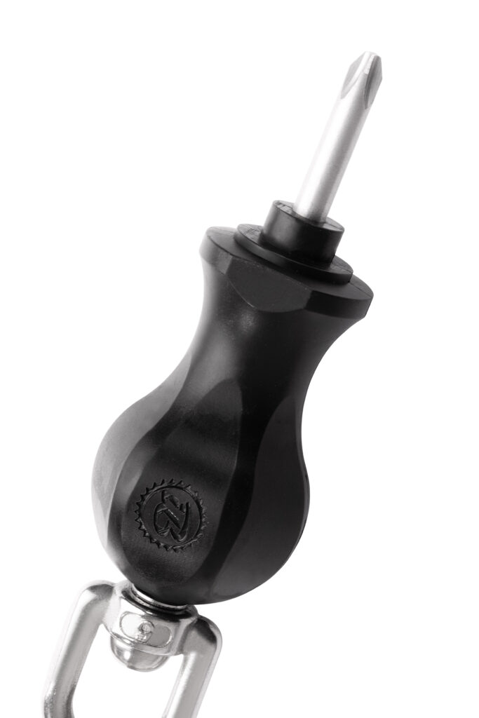 Der Kern der Lösung ist der integrierte Stift mit Sicherungshülse (die sogenannte Abreißmutter), der das Schwenkgelenk dauerhaft mit dem Werkzeug verbindet. Dies gewährleistet, dass die Verbindung widerstandsfähig gegen Beschädigungen, Versuche des Abschraubens oder Diebstahl ist – und dennoch eine freie Drehung sowie hohen Benutzerkomfort ermöglicht. Es ist eine Kombination aus Ergonomie und Langlebigkeit – Eigenschaften, die den IBOMBO-Qualitätsstandard definieren.