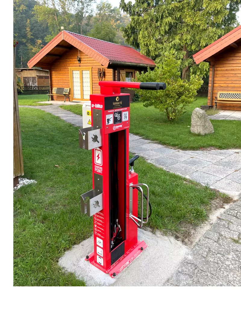 - Möglichkeit zum Aufladen von E-Bike, Roller und Handy