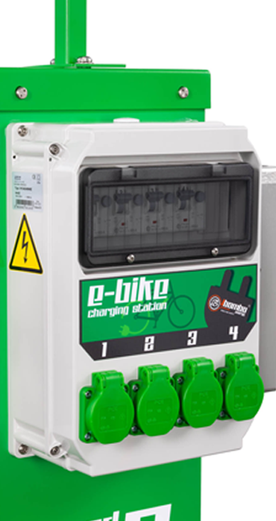 Der Ladegerät ist für das Laden von Elektrofahrrädern ausgelegt und kann nicht mit Geräten höherer Leistung verbunden werden. Es ist für den Gebrauch an öffentlichen Plätze geeignet. Es verfügt über 4 Anschlüsse und empfindliche Differenzstromsicherungen, die allen EU-Normen entsprechen, die die Verwendung von Steckdosen durch unqualifizierte Personen regeln. Der Zugang zum Ladegerätmodul und den Sicherungen ist durch die Verwendung von Security – Schrauben geschützt.