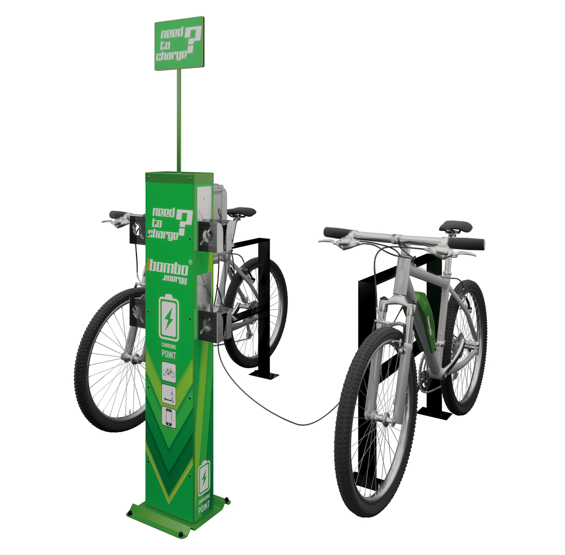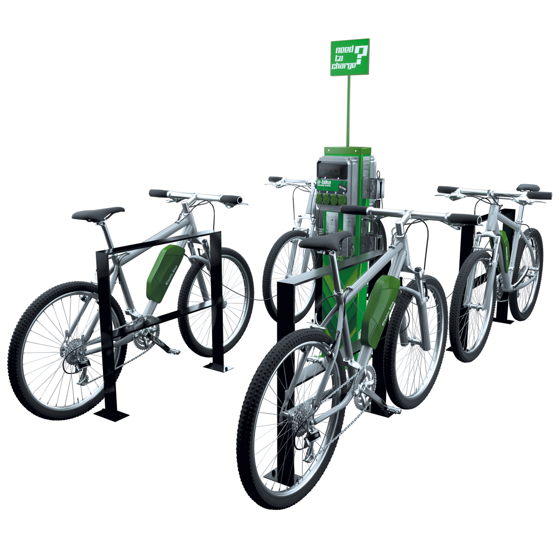 In der Grundversion verfügt das Gerät über ein Modul mit 4 x Steckdosen (250V) zum Laden von Elektrofahrrädern und 4 x Edelstahlhalterungen für Ladegeräte. Dieses Produkt ist erweiterbar auf 8 x Steckdosen (250V), Fahrradständer, sowie weiteres Zubehör.