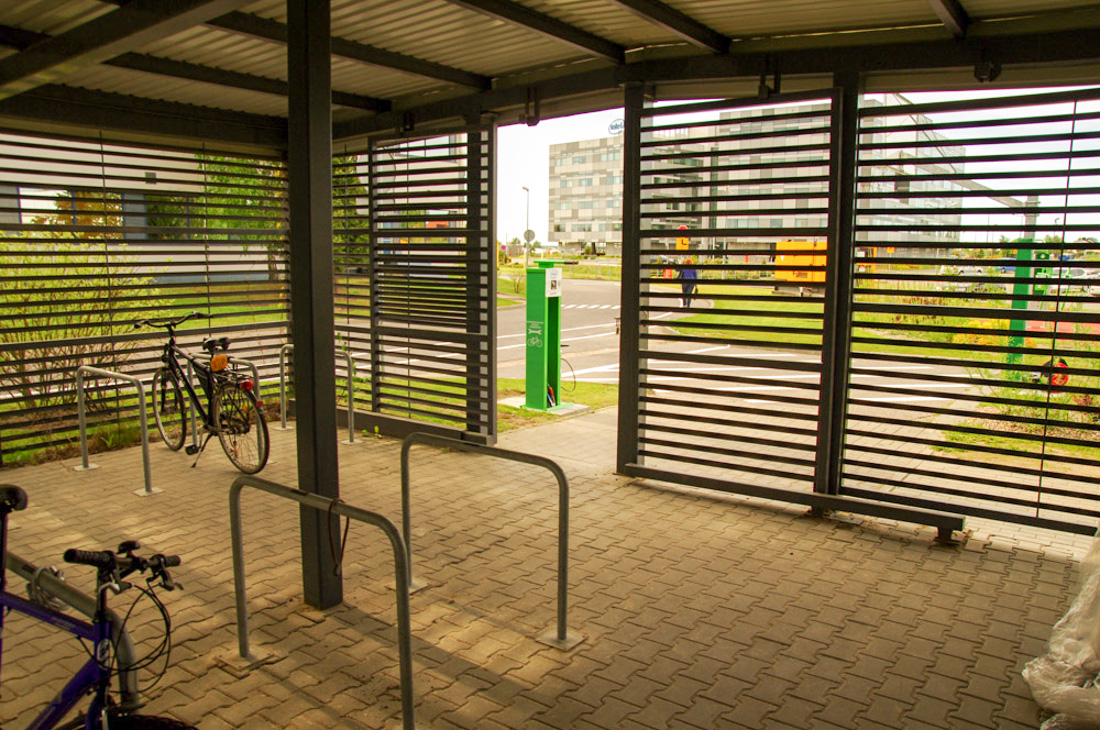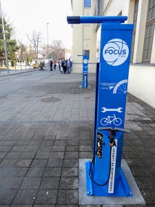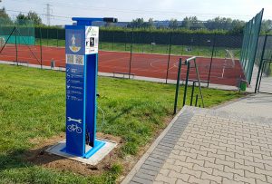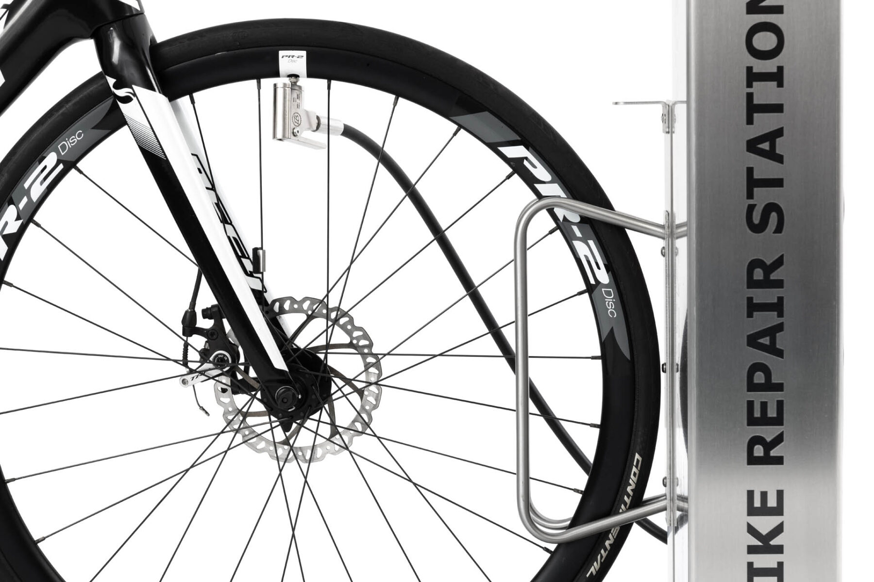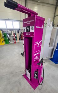 Die Blechelemente der Station werden mit Anti-Diebstahlschrauben befestigt – die Bits für diese Schrauben werden mit der Station mitgeliefert. Der QR-CODE auf der Vorderseite der Station ermöglicht die Nutzung von Online-Publikationen mit Anleitungen zur Behebung von Fahrraddefekten. Dieses Modell kann zusätzlich unter anderem mit einem Klapprahmen, einem großen oder kleinen Hilfs-Fahrradständer, einem pneumatischen Skateboard-Griff oder einem E-BIKE-Fahrradlademodul ausgestattet werden.