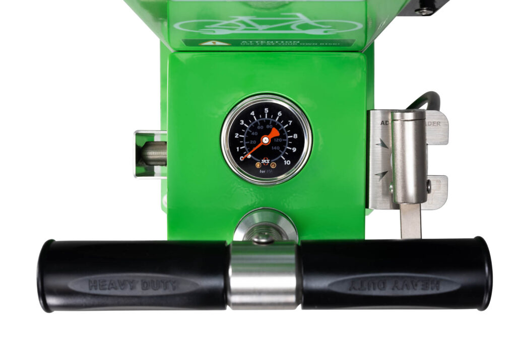 Stationäre Handpumpe mit Kolben (fi 14) und Griff (fi 32) aus Edelstahl (AISI304) – Druckbereich 0–10 bar + Manometer mit Glycerin (Antibeschlag) + Dichtungs- und Schmierring aus Aluminium (PA6)