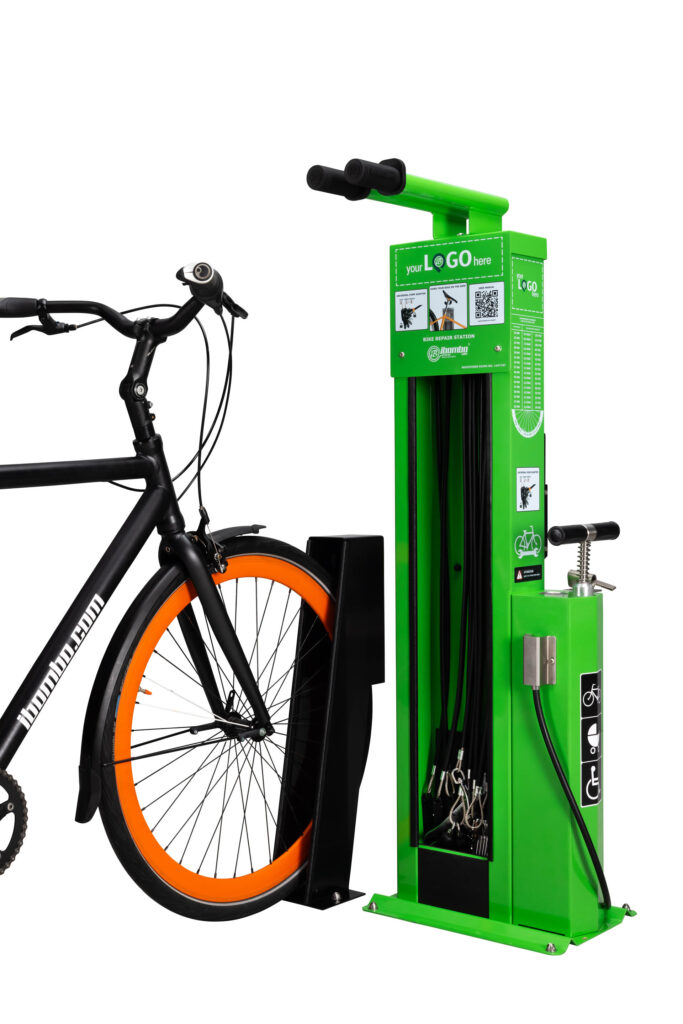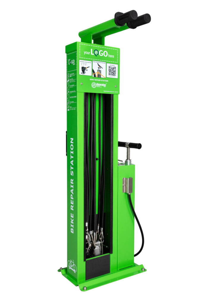 Die Fahrrad-Reparaturstation – IBOMBO SCANDIC ist, wie alle unsere Stationen, für den Einsatz im öffentlichen Raum geeignet. Es ist eine kompakte Version unseres Flaggschiffmodells IBOMBO PRS-LV2.