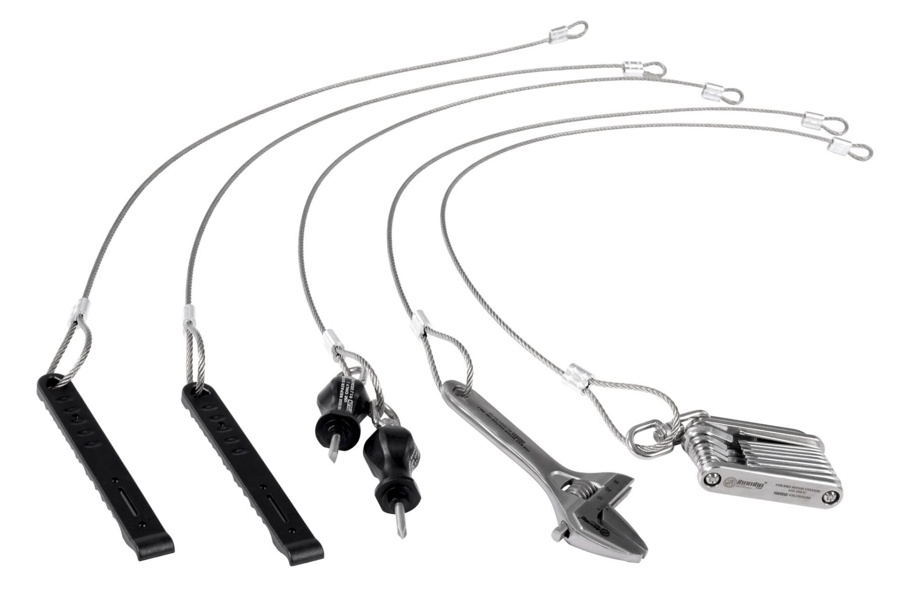 Das Gehäuse der Station besteht aus verzinktem Stahl oder Edelstahl (AISI 304) mit einer Pulver- oder thermoplastischen Beschichtung. Die Station wird mit Ankern am Boden oder an der Wand befestigt. Die Werkzeuge werden an den Edelstahl-Drahtseilen befestigt, die aus dem inneren der Station kommen. Die Station ist mit einer Handpumpe mit einem Adapter für alle Ventiltypen ausgestattet. Die Blechelemente des Gerätes werden mit Anti-Diebstahlschrauben befestigt – die Bits für diese Schrauben werden mit der Station mitgeliefert. Der auf der Station angebrachte QR-CODE ermöglicht die sofortige Nutzung von Online-Publikationen mit Reparaturanleitungen zur Behebung von Fahrraddefekten.