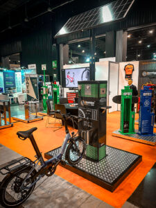 Die Station ist mit einem elektrischen Kompressor (bis zu 10 bar) ausgestattet, der über einen IBOMBO AISIPRO 630 HEAD™ Adapter (Edelstahl AISI 630, vernickelt) verfügt – kompatibel mit Presta-, Schrader- und Dunlop-Ventilen. Der Adapter ist an einem verstärkten, industrietauglichen Hydraulikschlauch montiert, was das System außergewöhnlich robust und schwer durchtrennbar macht.