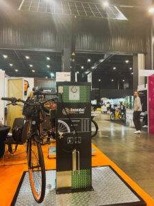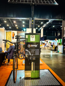 IBOMBO PRS-SUNO ist eine solarbetriebene Selbstbedienungs-Fahrradreparaturstation, die dank eines 190-Watt-Solarmoduls und einer 45-Ah-Batterie vollständige Energieunabhängigkeit (off-grid) bietet. Sie ermöglicht das Laden von Geräten über USB sowie induktives Laden, während die LED-Beleuchtung mit Bewegungs- und Dämmerungssensor eine komfortable Nutzung zu jeder Tages- und Nachtzeit gewährleistet.